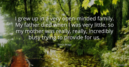 Braga, Sonia. (2026, February 16). I grew up in a very open-minded family. My father died when I was very little, so my mother was really, really, incredibly busy trying to provide for us. FixQuotes. https://fixquotes.com/quotes/i-grew-up-in-a-very-open-minded-family-my-father-161699/