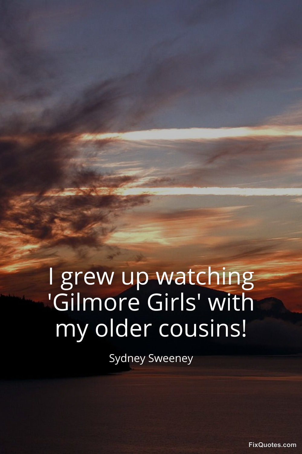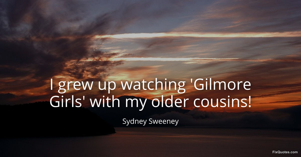 Sweeney, Sydney. (2026, January 11). I grew up watching 'Gilmore Girls' with my older cousins! FixQuotes. https://fixquotes.com/quotes/i-grew-up-watching-gilmore-girls-with-my-older-183788/