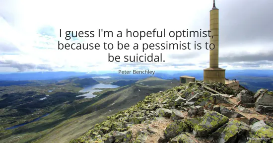 Benchley, Peter. "I guess I'm a hopeful optimist, because to be a pessimist is to be suicidal." FixQuotes. January 17, 2026. https://fixquotes.com/quotes/i-guess-im-a-hopeful-optimist-because-to-be-a-76063/.