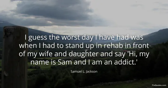 Jackson, Samuel L. (2026, January 17). I guess the worst day I have had was when I had to stand up in rehab in front of my wife and daughter and say 'Hi, my name is Sam and I am an addict.'. FixQuotes. https://fixquotes.com/quotes/i-guess-the-worst-day-i-have-had-was-when-i-had-65636/