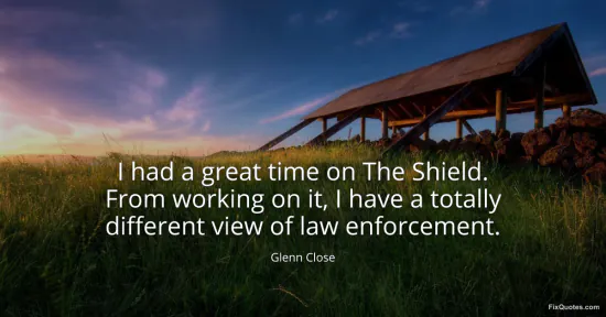 Close, Glenn. (2026, February 16). I had a great time on The Shield. From working on it, I have a totally different view of law enforcement. FixQuotes. https://fixquotes.com/quotes/i-had-a-great-time-on-the-shield-from-working-on-125125/