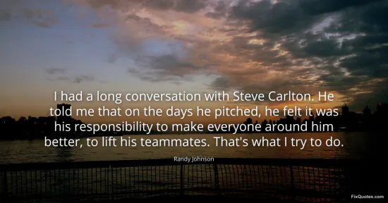 Johnson, Randy. (2026, January 15). I had a long conversation with Steve Carlton. He told me that on the days he pitched, he felt it was his responsibility to make everyone around him better, to lift his teammates. That's what I try to do. FixQuotes. https://fixquotes.com/quotes/i-had-a-long-conversation-with-steve-carlton-he-168326/