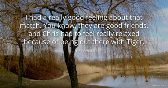 Sutton, Hal. "I had a really good feeling about that match. You know, they are good friends, and Chris had to feel really relaxed because of being out there with Tiger." FixQuotes. January 17, 2026. https://fixquotes.com/quotes/i-had-a-really-good-feeling-about-that-match-you-77248/.