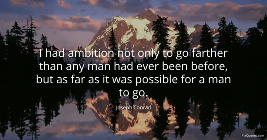 Conrad, Joseph. (2026, January 14). I had ambition not only to go farther than any man had ever been before, but as far as it was possible for a man to go. FixQuotes. https://fixquotes.com/quotes/i-had-ambition-not-only-to-go-farther-than-any-156373/