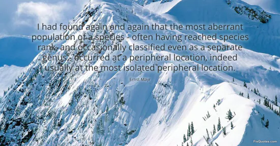 Mayr, Ernst. (2026, January 18). I had found again and again that the most aberrant population of a species - often having reached species rank, and occasionally classified even as a separate genus - occurred at a peripheral location, indeed usually at the most isolated peripheral location. FixQuotes. https://fixquotes.com/quotes/i-had-found-again-and-again-that-the-most-10947/
