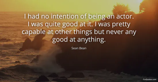 Bean, Sean. (2026, January 16). I had no intention of being an actor. I was quite good at it. I was pretty capable at other things but never any good at anything. FixQuotes. https://fixquotes.com/quotes/i-had-no-intention-of-being-an-actor-i-was-quite-88090/