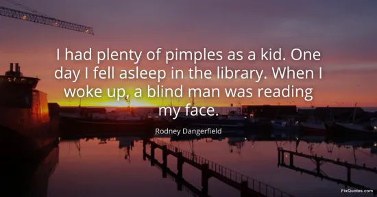 Dangerfield, Rodney. (2026, January 18). I had plenty of pimples as a kid. One day I fell asleep in the library. When I woke up, a blind man was reading my face. FixQuotes. https://fixquotes.com/quotes/i-had-plenty-of-pimples-as-a-kid-one-day-i-fell-1590/