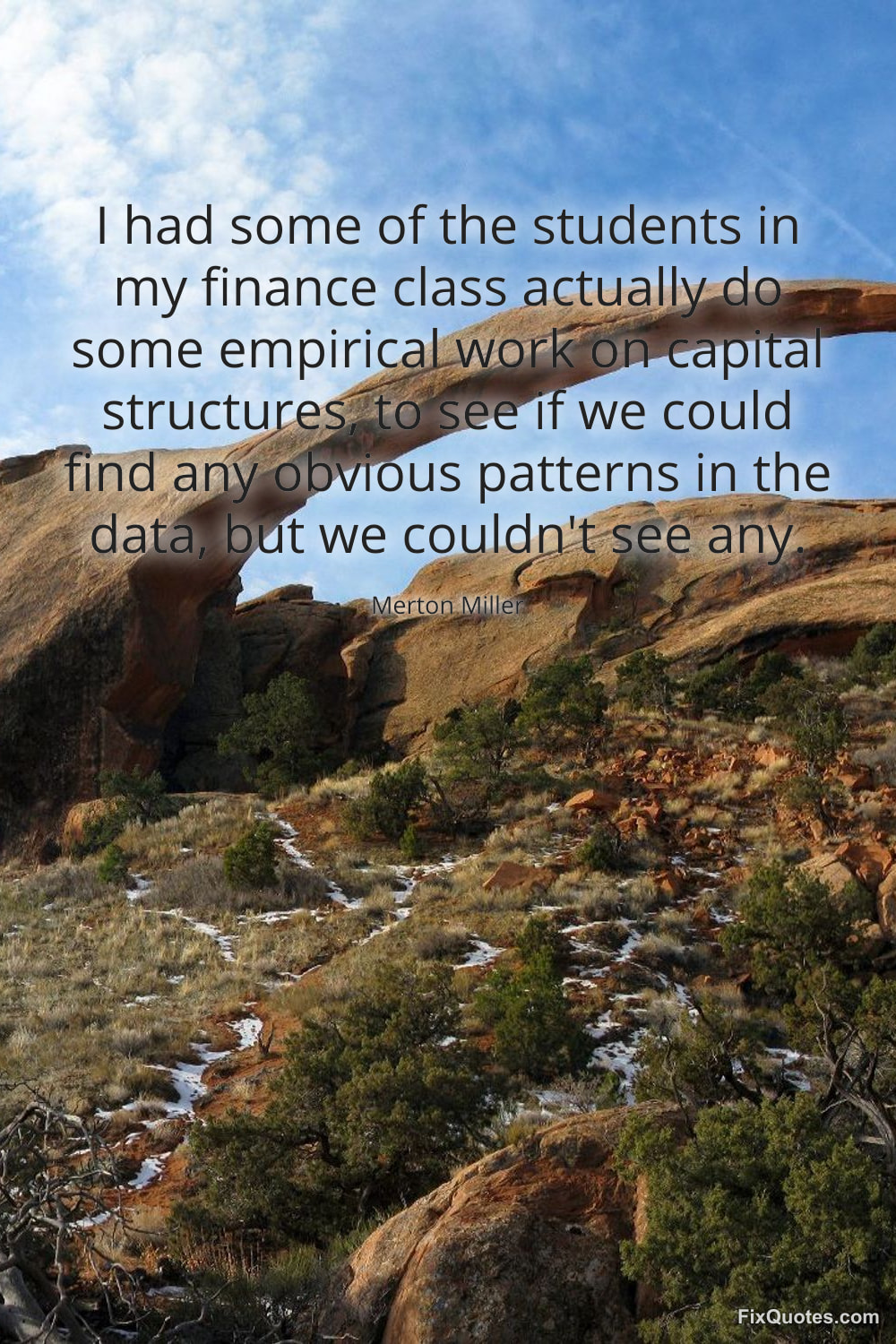 Miller, Merton. (2026, January 16). I had some of the students in my finance class actually do some empirical work on capital structures, to see if we could find any obvious patterns in the data, but we couldn't see any. FixQuotes. https://fixquotes.com/quotes/i-had-some-of-the-students-in-my-finance-class-95708/