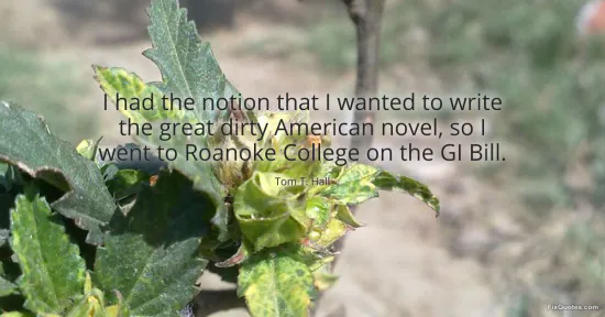Hall, Tom T. (2026, January 17). I had the notion that I wanted to write the great dirty American novel, so I went to Roanoke College on the GI Bill. FixQuotes. https://fixquotes.com/quotes/i-had-the-notion-that-i-wanted-to-write-the-great-76707/