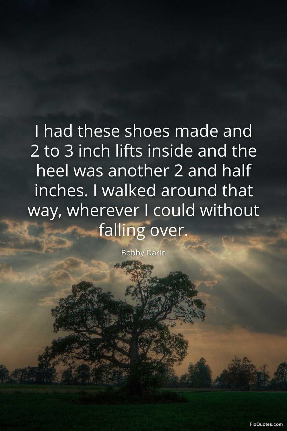 Darin, Bobby. (2026, January 17). I had these shoes made and 2 to 3 inch lifts inside and the heel was another 2 and half inches. I walked around that way, wherever I could without falling over. FixQuotes. https://fixquotes.com/quotes/i-had-these-shoes-made-and-2-to-3-inch-lifts-39666/