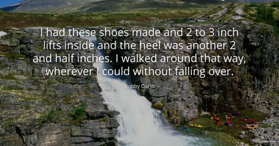Darin, Bobby. "I had these shoes made and 2 to 3 inch lifts inside and the heel was another 2 and half inches. I walked around that way, wherever I could without falling over." FixQuotes. January 17, 2026. https://fixquotes.com/quotes/i-had-these-shoes-made-and-2-to-3-inch-lifts-39666/.