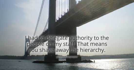 Klinsmann, Jurgen. (2026, January 17). I had to delegate authority to the people on my staff. That means you shave away the hierarchy. FixQuotes. https://fixquotes.com/quotes/i-had-to-delegate-authority-to-the-people-on-my-69560/