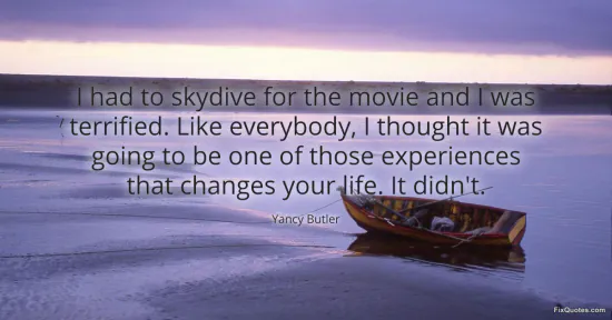Butler, Yancy. (2026, January 15). I had to skydive for the movie and I was terrified. Like everybody, I thought it was going to be one of those experiences that changes your life. It didn't. FixQuotes. https://fixquotes.com/quotes/i-had-to-skydive-for-the-movie-and-i-was-156348/