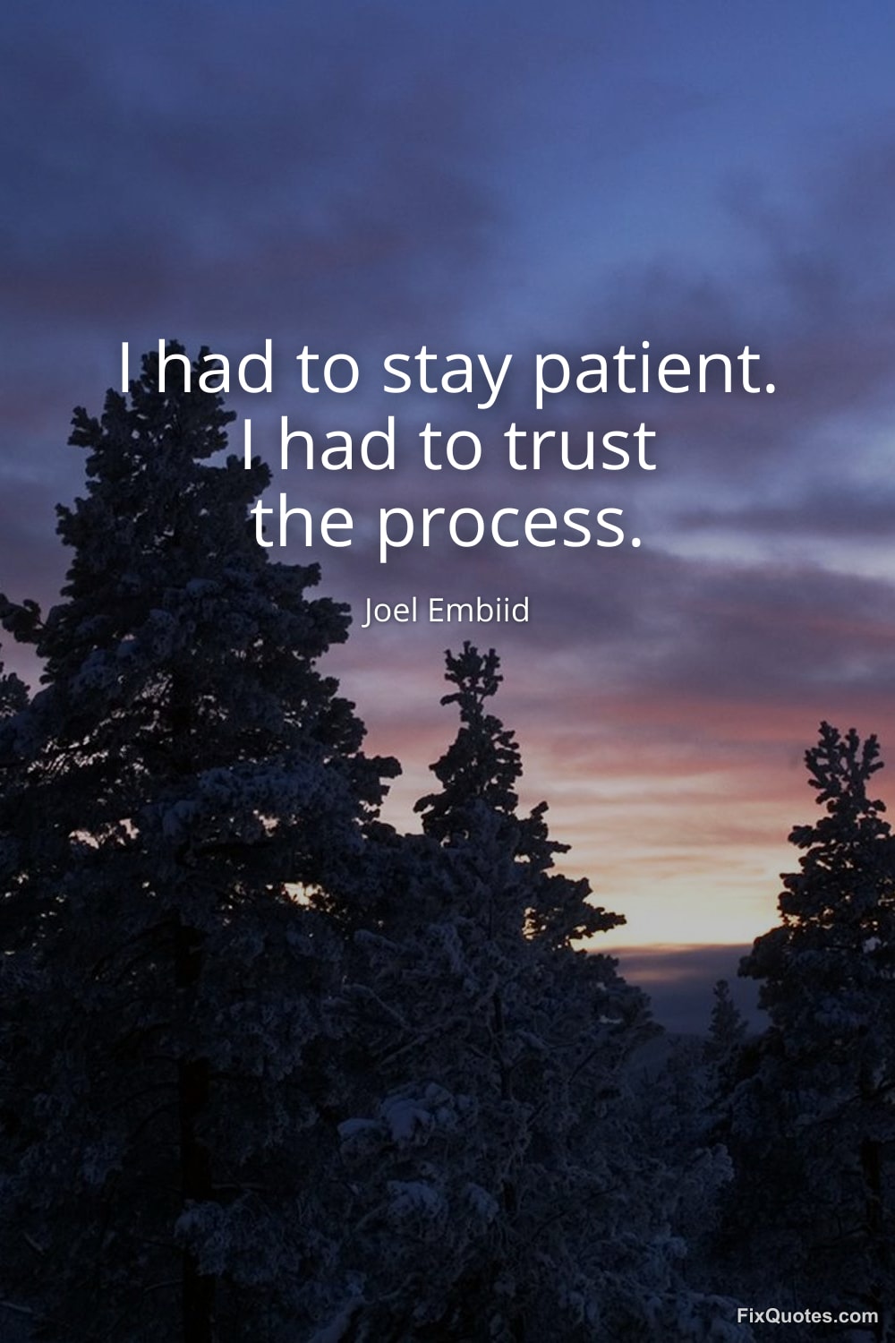 Embiid, Joel. (2026, January 30). I had to stay patient. I had to trust the process. FixQuotes. https://fixquotes.com/quotes/i-had-to-stay-patient-i-had-to-trust-the-process-184795/