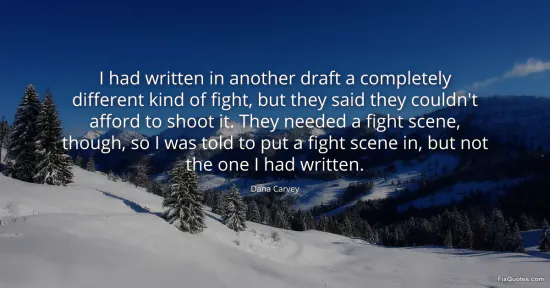 Carvey, Dana. (2026, January 16). I had written in another draft a completely different kind of fight, but they said they couldn't afford to shoot it. They needed a fight scene, though, so I was told to put a fight scene in, but not the one I had written. FixQuotes. https://fixquotes.com/quotes/i-had-written-in-another-draft-a-completely-124023/