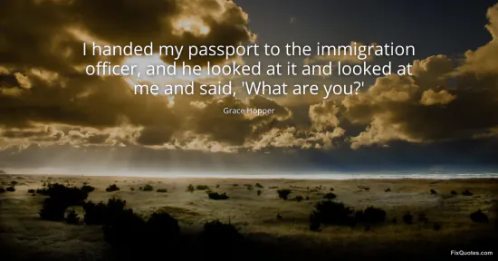 Hopper, Grace. (2026, February 24). I handed my passport to the immigration officer, and he looked at it and looked at me and said, 'What are you?'. FixQuotes. https://fixquotes.com/quotes/i-handed-my-passport-to-the-immigration-officer-60386/