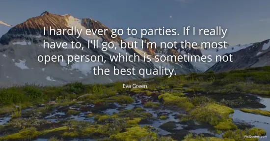 Green, Eva. (2026, January 17). I hardly ever go to parties. If I really have to, I'll go, but I'm not the most open person, which is sometimes not the best quality. FixQuotes. https://fixquotes.com/quotes/i-hardly-ever-go-to-parties-if-i-really-have-to-67327/