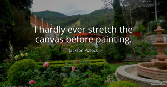 Pollock, Jackson. (2026, January 16). I hardly ever stretch the canvas before painting. FixQuotes. https://fixquotes.com/quotes/i-hardly-ever-stretch-the-canvas-before-painting-102154/