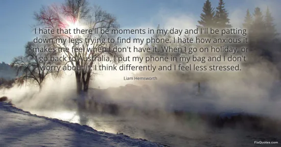 Hemsworth, Liam. (2026, January 15). I hate that there'll be moments in my day and I'll be patting down my legs trying to find my phone. I hate how anxious it makes me feel when I don't have it. When I go on holiday, or I go back to Australia, I put my phone in my bag and I don't worry about it; I think differently and I feel less stressed. FixQuotes. https://fixquotes.com/quotes/i-hate-that-therell-be-moments-in-my-day-and-ill-172504/