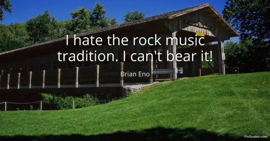 Eno, Brian. (2026, January 17). I hate the rock music tradition. I can't bear it! FixQuotes. https://fixquotes.com/quotes/i-hate-the-rock-music-tradition-i-cant-bear-it-38600/
