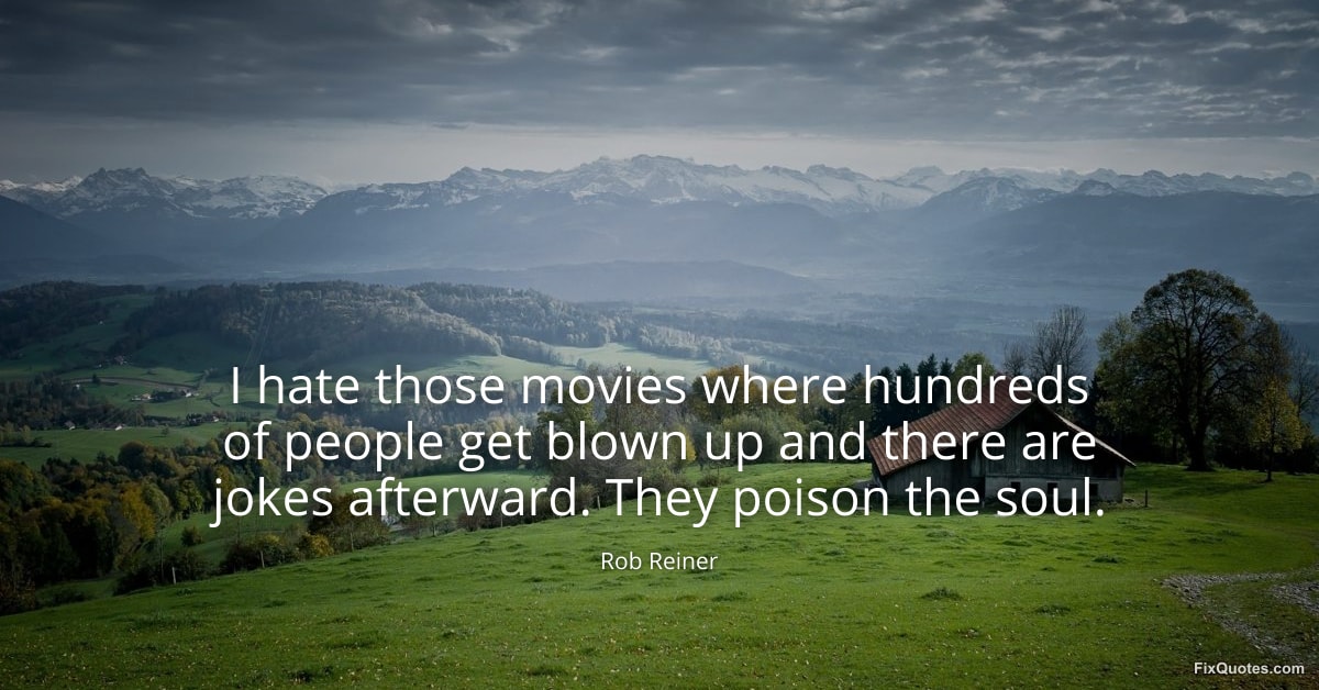 Reiner, Rob. (2026, January 11). I hate those movies where hundreds of people get blown up and there are jokes afterward. They poison the soul. FixQuotes. https://fixquotes.com/quotes/i-hate-those-movies-where-hundreds-of-people-get-173696/