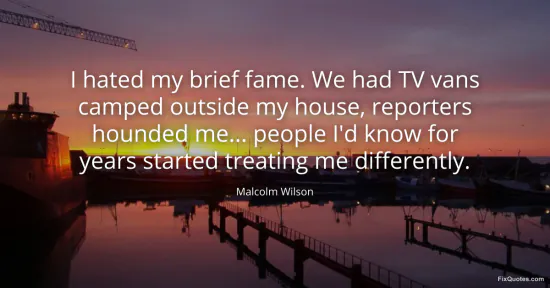 Wilson, Malcolm. (2026, February 16). I hated my brief fame. We had TV vans camped outside my house, reporters hounded me... people I'd know for years started treating me differently. FixQuotes. https://fixquotes.com/quotes/i-hated-my-brief-fame-we-had-tv-vans-camped-168037/