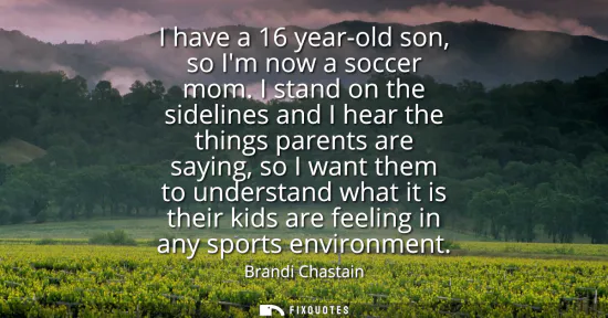 "I have a 16 year-old son, so I'm now a soccer mom. I stand on the sidelines and I hear the things parents are saying, so I want them to understand what it is their kids are feeling in any sports environment"
