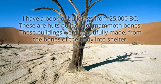 Nicholson, Ben. (2026, January 17). I have a book of buildings from 25,000 BC. These are huts built out of mammoth bones. These buildings were beautifully made, from the bones of the body into shelter. FixQuotes. https://fixquotes.com/quotes/i-have-a-book-of-buildings-from-25000-bc-these-41271/