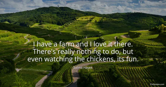 Hayek, Salma. (2026, January 16). I have a farm and I love it there. There's really nothing to do, but even watching the chickens, its fun. FixQuotes. https://fixquotes.com/quotes/i-have-a-farm-and-i-love-it-there-theres-really-107025/