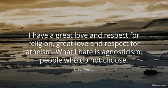 Welles, Orson. (2026, January 18). I have a great love and respect for religion, great love and respect for atheism. What I hate is agnosticism, people who do not choose. FixQuotes. https://fixquotes.com/quotes/i-have-a-great-love-and-respect-for-religion-1158/