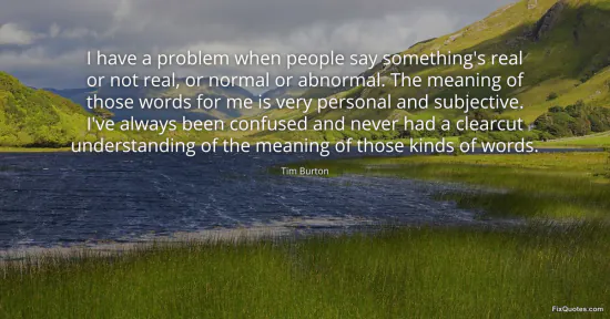 Burton, Tim. (2026, January 15). I have a problem when people say something's real or not real, or normal or abnormal. The meaning of those words for me is very personal and subjective. I've always been confused and never had a clearcut understanding of the meaning of those kinds of words. FixQuotes. https://fixquotes.com/quotes/i-have-a-problem-when-people-say-somethings-real-165906/