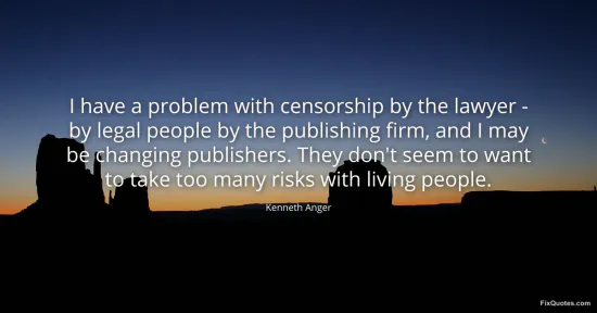 "I have a problem with censorship by the lawyer - by legal people by the publishing firm, and I may be changing publishers. They don't seem to want to take too many risks with living people"