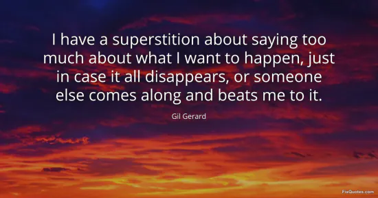 Gerard, Gil. (2026, January 15). I have a superstition about saying too much about what I want to happen, just in case it all disappears, or someone else comes along and beats me to it. FixQuotes. https://fixquotes.com/quotes/i-have-a-superstition-about-saying-too-much-about-144054/