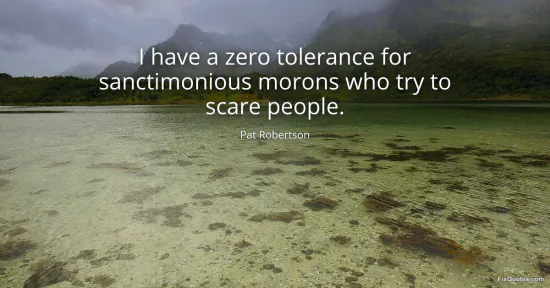 Robertson, Pat. "I have a zero tolerance for sanctimonious morons who try to scare people." FixQuotes. January 16, 2026. https://fixquotes.com/quotes/i-have-a-zero-tolerance-for-sanctimonious-morons-83298/.
