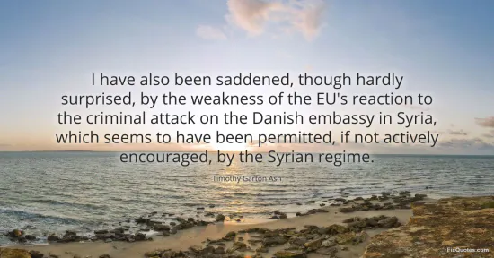"I have also been saddened, though hardly surprised, by the weakness of the EU's reaction to the criminal attack on the Danish embassy in Syria, which seems to have been permitted, if not actively encouraged, by the Syrian regime"