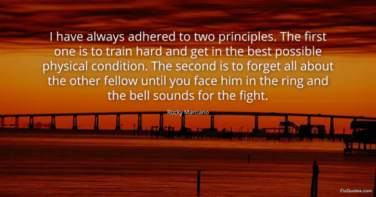 Marciano, Rocky. "I have always adhered to two principles. The first one is to train hard and get in the best possible physical condition. The second is to forget all about the other fellow until you face him in the ring and the bell sounds for the fight." FixQuotes. January 16, 2026. https://fixquotes.com/quotes/i-have-always-adhered-to-two-principles-the-first-112518/.