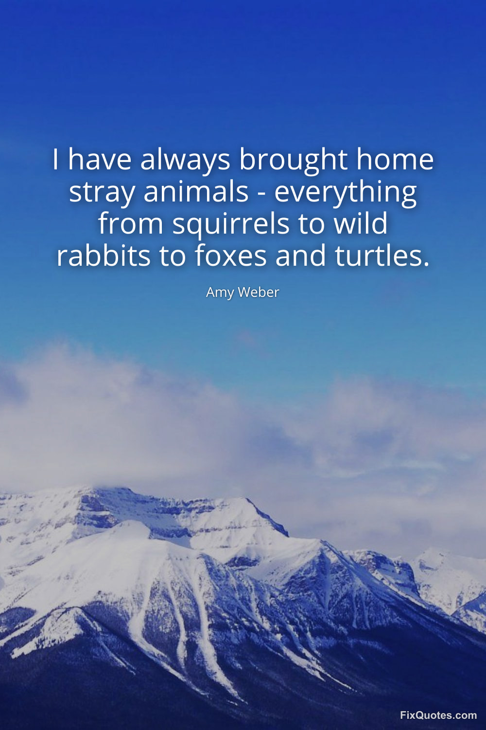 Weber, Amy. (2026, January 16). I have always brought home stray animals - everything from squirrels to wild rabbits to foxes and turtles. FixQuotes. https://fixquotes.com/quotes/i-have-always-brought-home-stray-animals-124718/