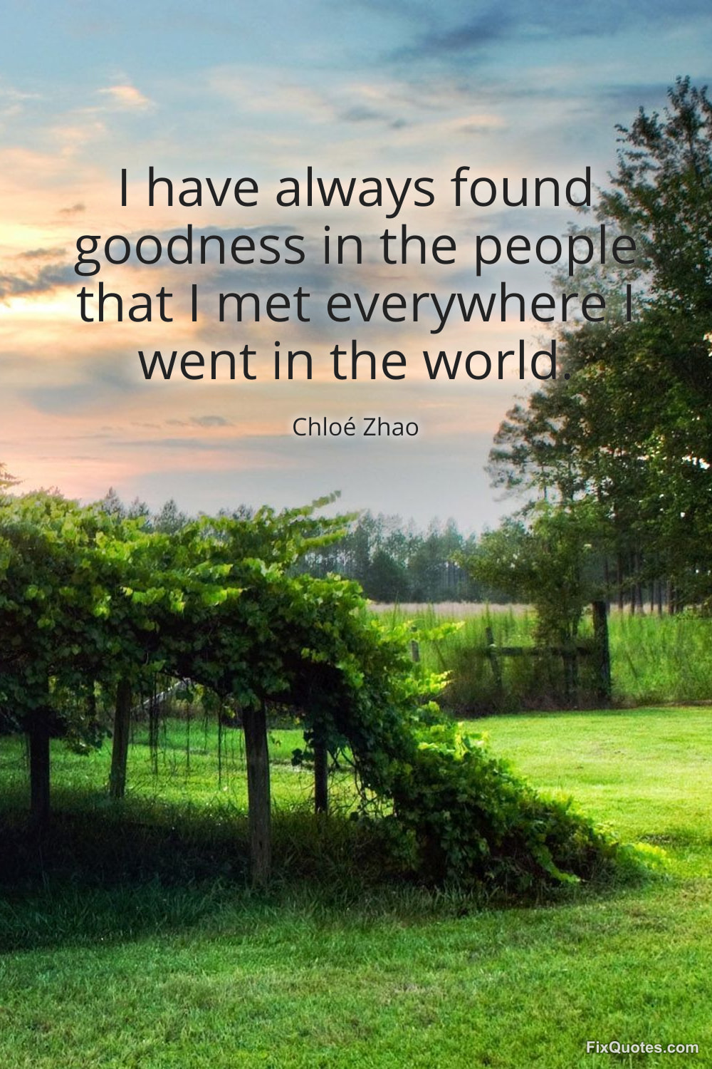 Zhao, Chloé. (2026, January 25). I have always found goodness in the people that I met everywhere I went in the world. FixQuotes. https://fixquotes.com/quotes/i-have-always-found-goodness-in-the-people-that-i-184245/