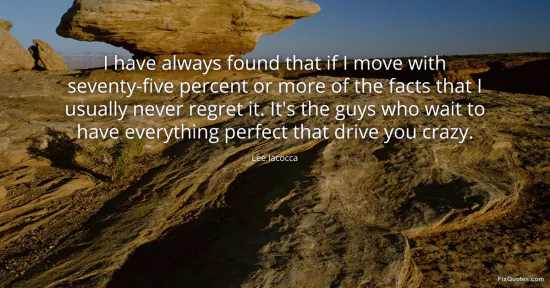 Iacocca, Lee. (2026, February 11). I have always found that if I move with seventy-five percent or more of the facts that I usually never regret it. It's the guys who wait to have everything perfect that drive you crazy. FixQuotes. https://fixquotes.com/quotes/i-have-always-found-that-if-i-move-with-32477/