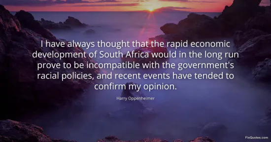 "I have always thought that the rapid economic development of South Africa would in the long run prove to be incompatible with the government's racial policies, and recent events have tended to confirm my opinion"