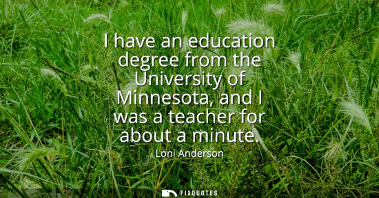 The line combines a credential with a punchline, sketching a whole backstory in a breath. Loni Anderson mentions an education degree from the University of Minnesota, then shrinks her time in the classroom to "about a minute", a comic exaggeration that captures the speed and certainty of a career pivot. The humor is self-deprecating, but it also signals self-knowledge: she tried the stable, respectable path and realized she was built for something else.