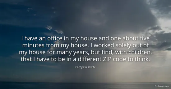 Guisewite, Cathy. (2026, January 17). I have an office in my house and one about five minutes from my house. I worked solely out of my house for many years, but find, with children, that I have to be in a different ZIP code to think. FixQuotes. https://fixquotes.com/quotes/i-have-an-office-in-my-house-and-one-about-five-30445/