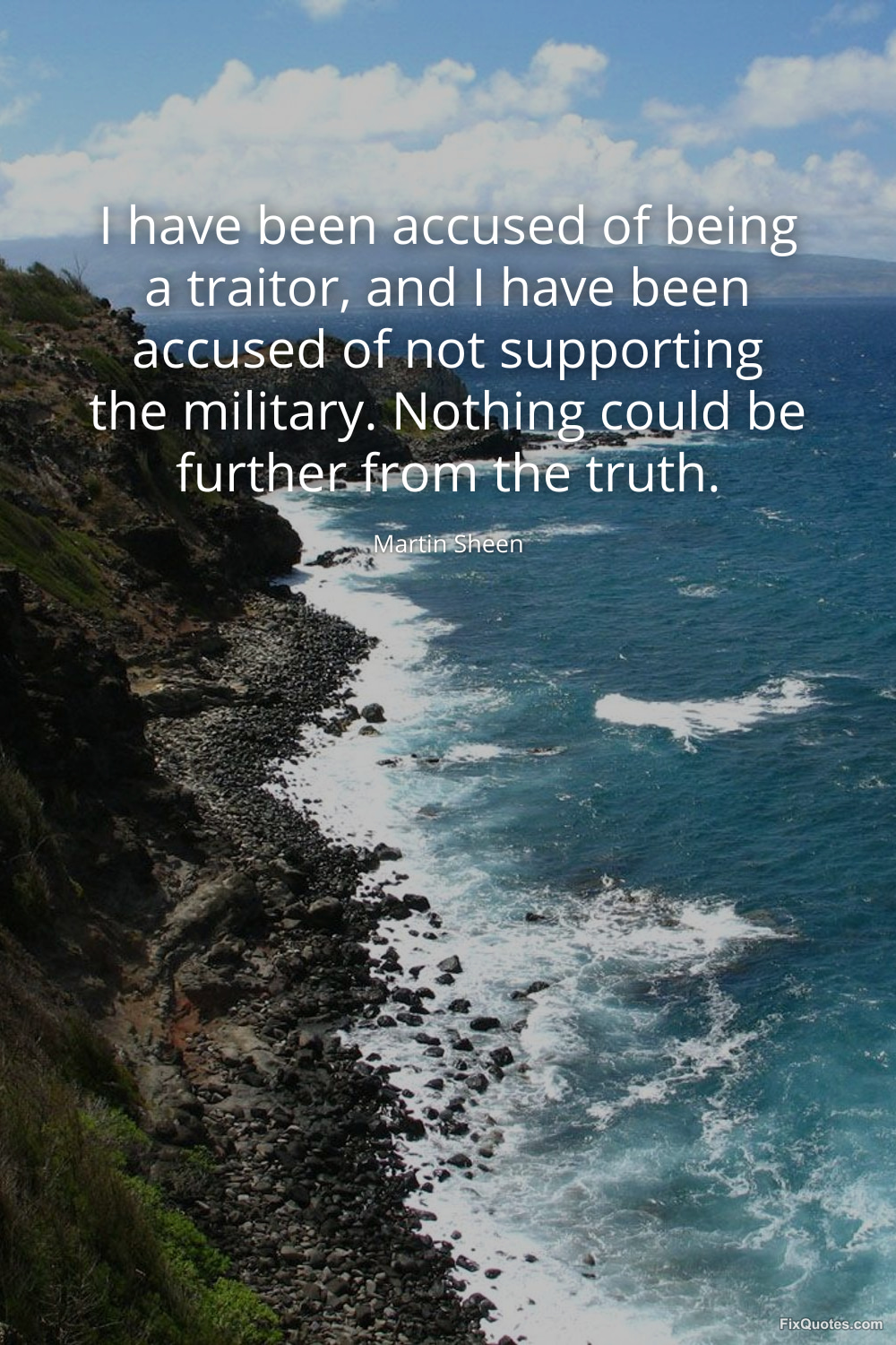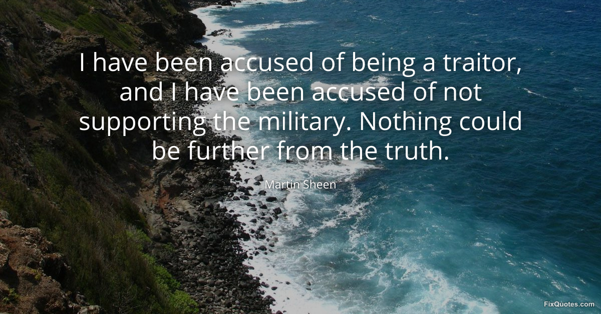 Sheen, Martin. (2026, January 17). I have been accused of being a traitor, and I have been accused of not supporting the military. Nothing could be further from the truth. FixQuotes. https://fixquotes.com/quotes/i-have-been-accused-of-being-a-traitor-and-i-have-64593/