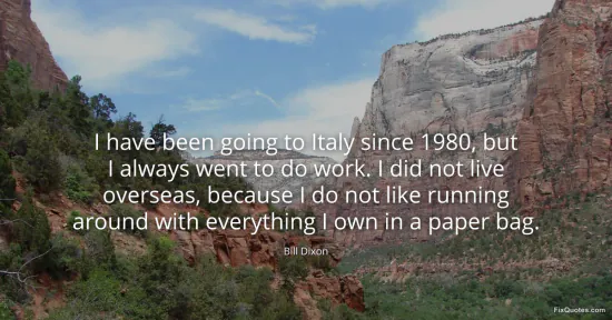 Dixon, Bill. (2026, January 15). I have been going to Italy since 1980, but I always went to do work. I did not live overseas, because I do not like running around with everything I own in a paper bag. FixQuotes. https://fixquotes.com/quotes/i-have-been-going-to-italy-since-1980-but-i-140521/