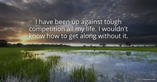 Disney, Walt. "I have been up against tough competition all my life. I wouldn't know how to get along without it." FixQuotes. January 18, 2026. https://fixquotes.com/quotes/i-have-been-up-against-tough-competition-all-my-15040/.