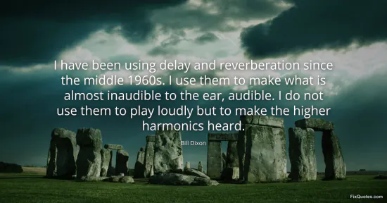 Dixon, Bill. "I have been using delay and reverberation since the middle 1960s. I use them to make what is almost inaudible to the ear, audible. I do not use them to play loudly but to make the higher harmonics heard." FixQuotes. January 17, 2026. https://fixquotes.com/quotes/i-have-been-using-delay-and-reverberation-since-46236/.