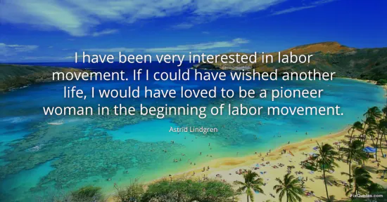 Lindgren, Astrid. (2026, January 16). I have been very interested in labor movement. If I could have wished another life, I would have loved to be a pioneer woman in the beginning of labor movement. FixQuotes. https://fixquotes.com/quotes/i-have-been-very-interested-in-labor-movement-if-138737/