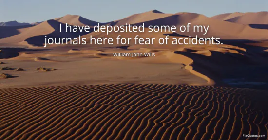 Wills, William John. (2026, January 18). I have deposited some of my journals here for fear of accidents. FixQuotes. https://fixquotes.com/quotes/i-have-deposited-some-of-my-journals-here-for-5563/