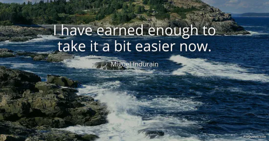 Indurain, Miguel. (2026, January 16). I have earned enough to take it a bit easier now. FixQuotes. https://fixquotes.com/quotes/i-have-earned-enough-to-take-it-a-bit-easier-now-135740/