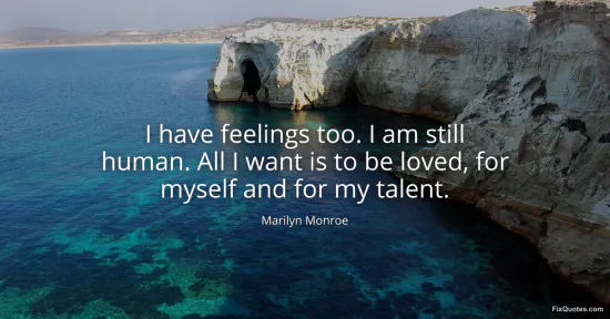Monroe, Marilyn. (2026, February 27). I have feelings too. I am still human. All I want is to be loved, for myself and for my talent. FixQuotes. https://fixquotes.com/quotes/i-have-feelings-too-i-am-still-human-all-i-want-24857/